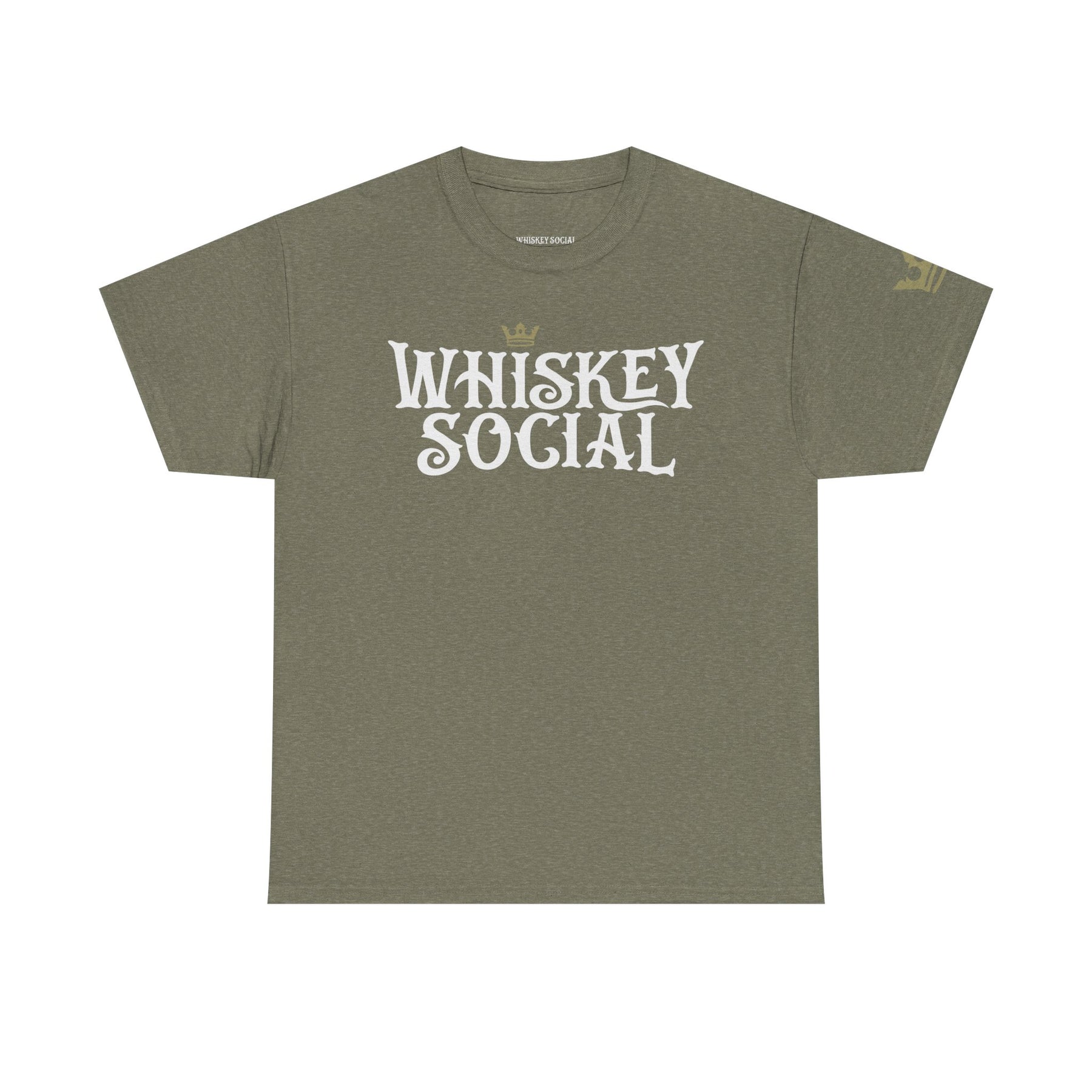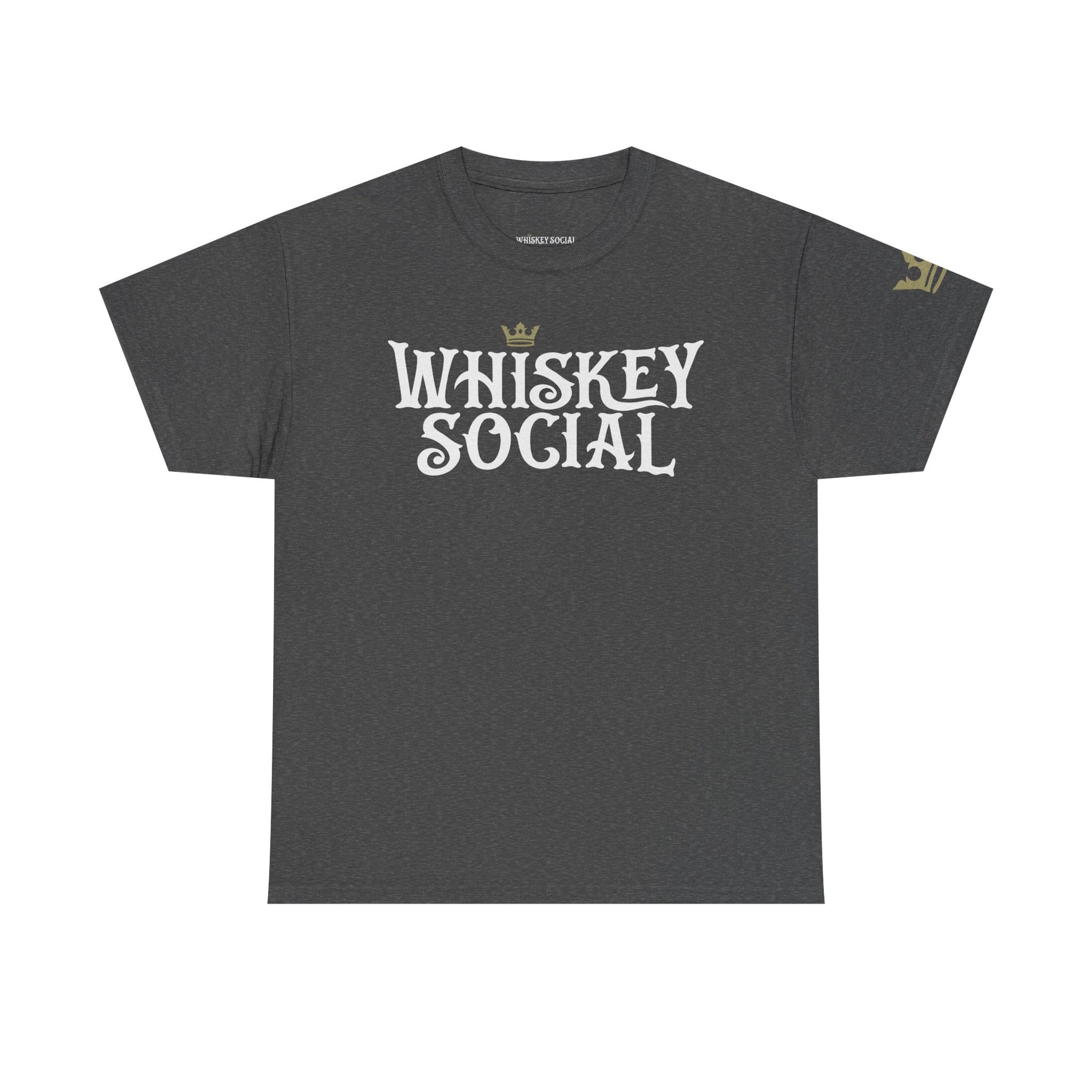 This T-shirt featuring the Whiskey Social logo exudes a casual and cool vibe, perfect for whiskey enthusiasts.